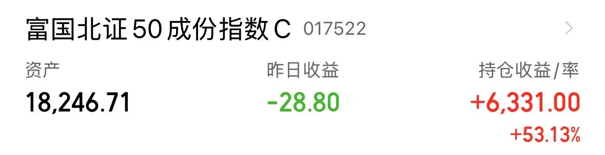 今天不涨不跌,我不动,北证50我还是低位布局,等待一波冲高$富国北证50成份指数C(OTCFUND|017522)$