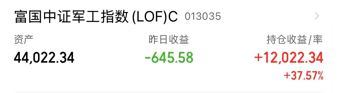 军工今天回踩,我不动,我觉得过了1月业绩预披露时期,2月可能会回归题材,所以我还是坚持布局军工$富国中证军工指数(LOF)C(OTCFUND|013035)$