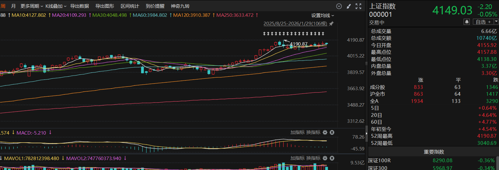 技术面上,近期基本在4100-4150区间波动,盘整久了,新的方向也不远了,还剩1天