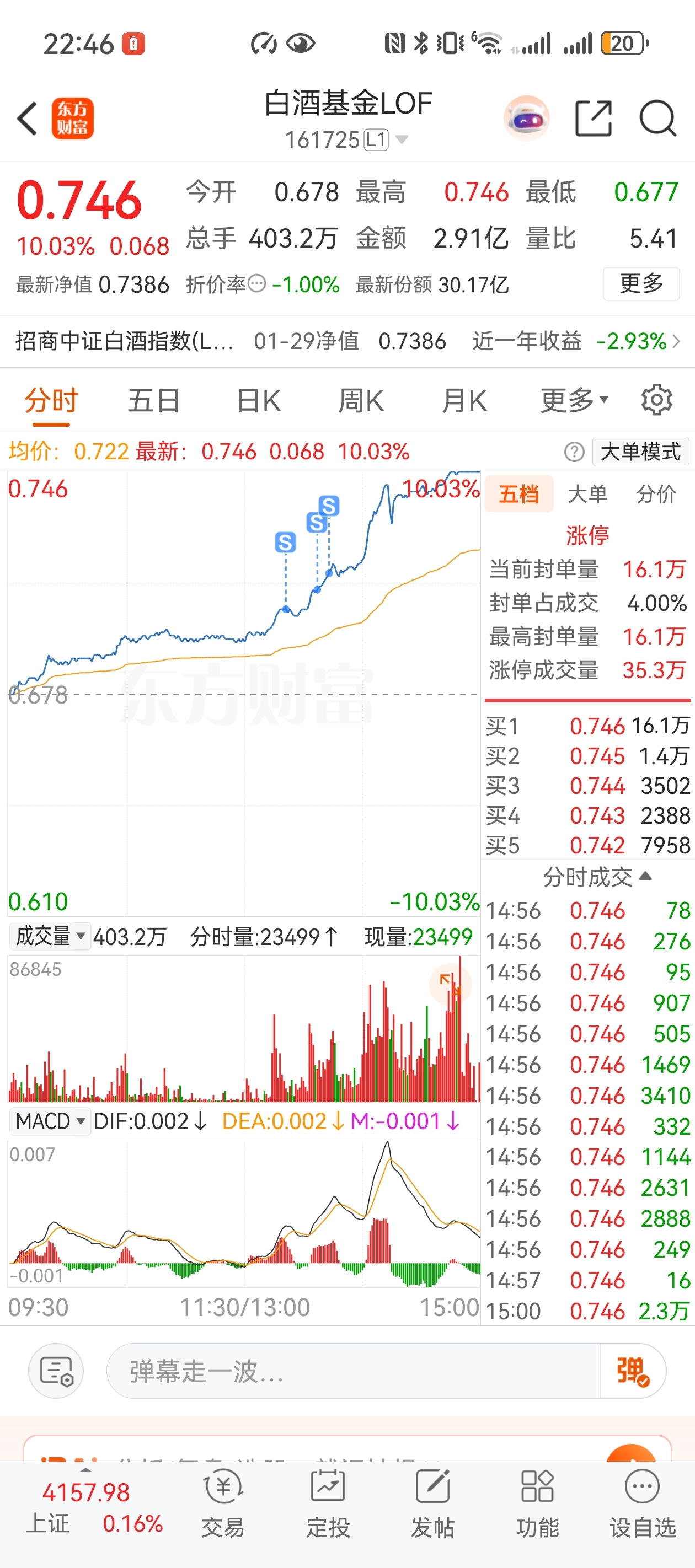 $白酒基金LOF(SZ161725)$ 感谢我吧,是我卖了涨停!反正一个涨停回不了本