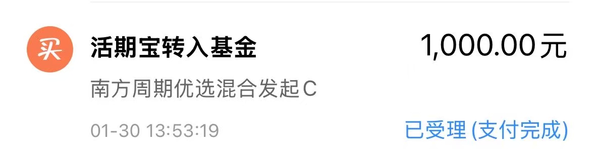 我今天加仓$南方周期优选混合发起C(OTCFUND|021712)$ 1000元