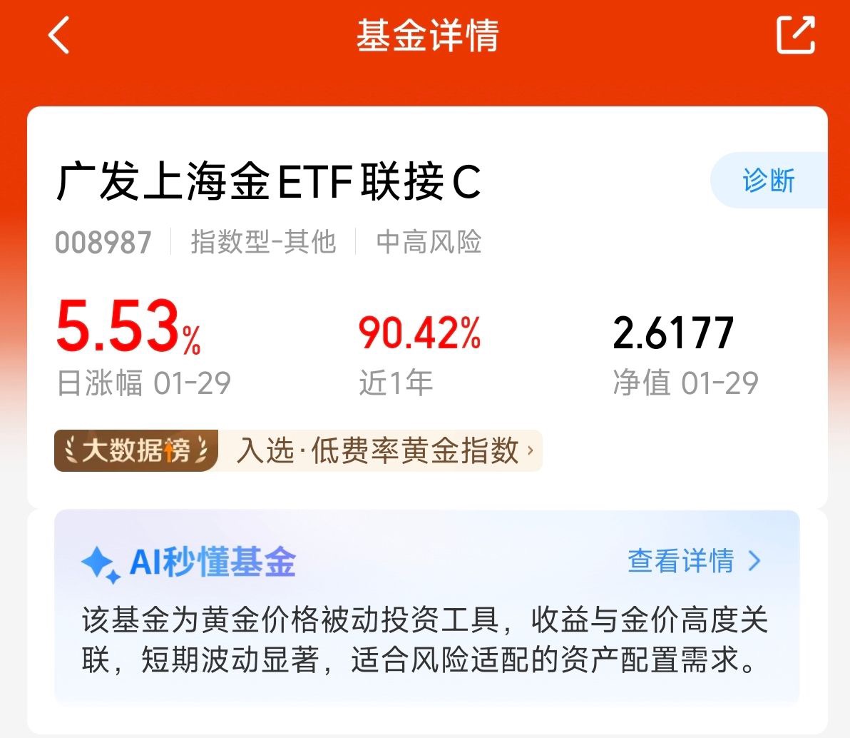 在地缘局势这么紧张的当下,除了黄金,你还能找到更具共识的避风港吗?广发上海金C这种聚焦黄金的基,就是为了应对这种高波动、高价位的常态。今天虽然价格回调,但支撑金价冲刺新高的底气还在。逻辑已经深入人心,守住底仓就是赢。$广发上海金ETF联接C$