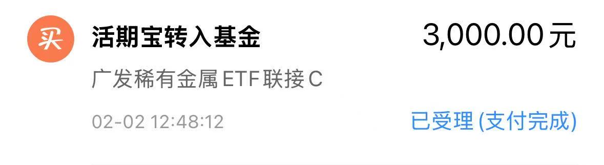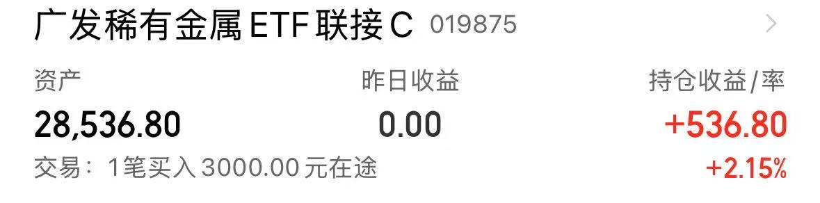 今日继续重点加仓$广发稀有金属ETF联接C(OTCFUND|019875)$ 3000元