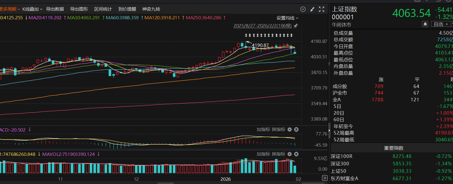 技术面上,今天继续回踩30日均线,观察4064的支撑情况,我觉得30日均线处有一些支撑
