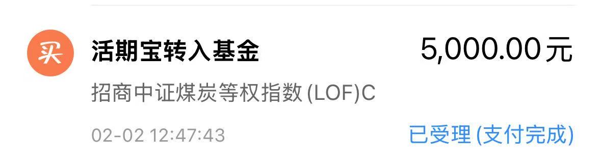 我今天加仓$招商中证煤炭等权指数(LOF)C(OTCFUND|013596)$ 5000元