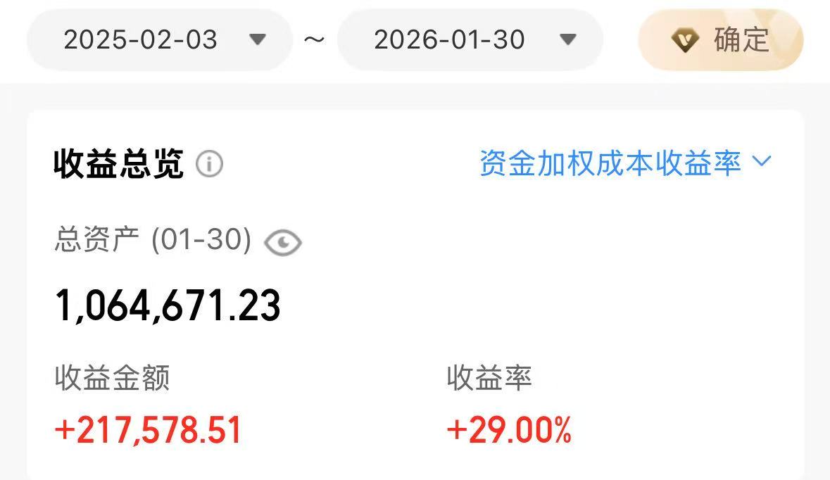 #晒收益# #围观圈子牛人操作# #定投日记# #资产配置计划# #围观牛人操作# #社区牛人计划 # #创作扶持计划##青禾创作计划##2月基金投资策略##黄金白银双双回调 贵金属后市何去何从?##CPO逆势爆发 上车吗?##2025超额关键词#