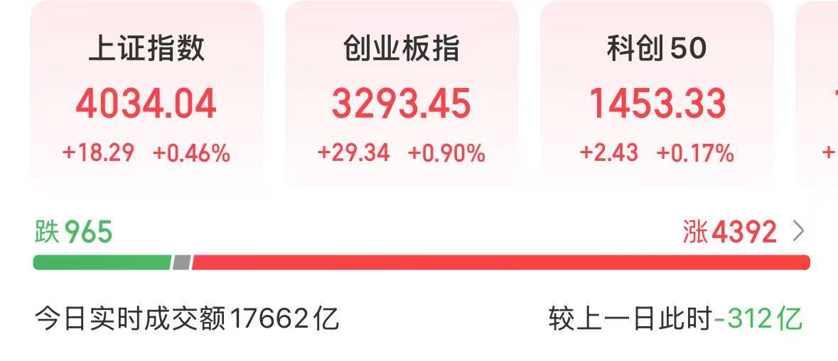 盘面上,截至我发文,上证指数上涨0.46%,创业板指数上涨0.90%,科创50上涨0.17%