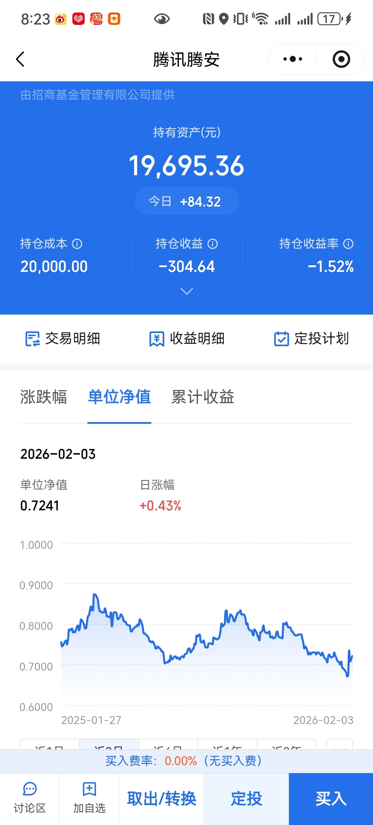 $白酒基金LOF(SZ161725)$ 为啥场外是0.43%,场内只有0.18。。。