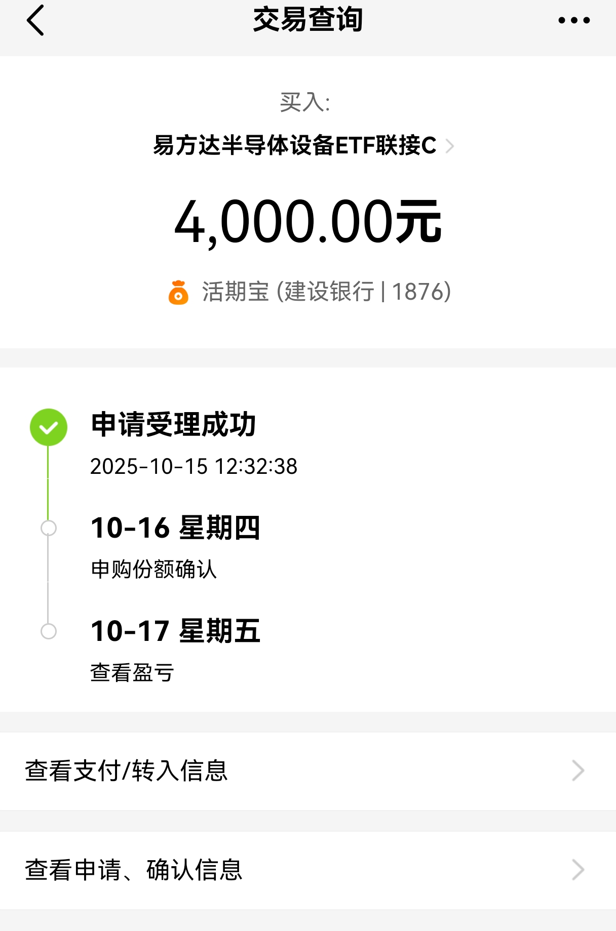 不要慌,调整其实就是给我们机会了,继续加$易方达半导体设备ETF联接C(OTCFUND|021894)$,从近期表现来看还是可以的,近一个月涨幅18.29%,近三个月涨幅38.10%,业绩比同类的强,趁回调加一波,最近闻泰科技被荷兰针对,黑天鹅事件导致半导体板块下跌,事件过去后这个板块还会涨。