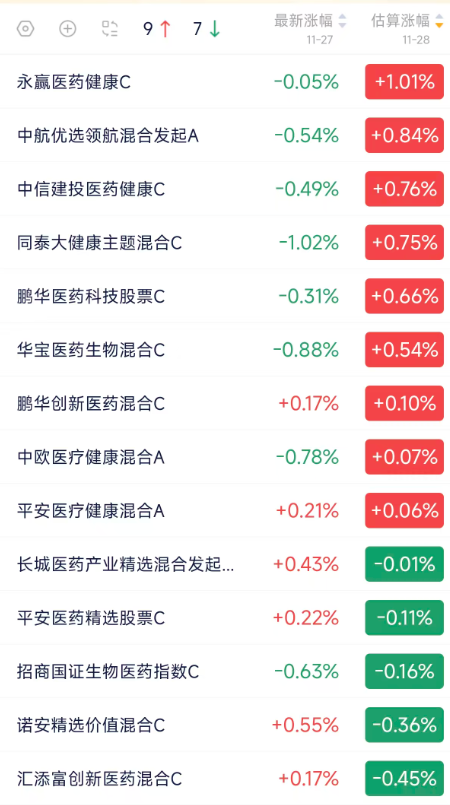 生物医药行业基金估值盘后快报:收益全览,关灯吃面