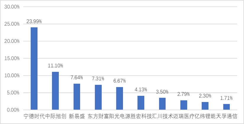 与美股七姐妹市值占比日趋提升类似,创50亦存在强者愈强的情况。5年前,前5大成分股权重占比39.52%,前十大成分股权重占比合计56.97%;