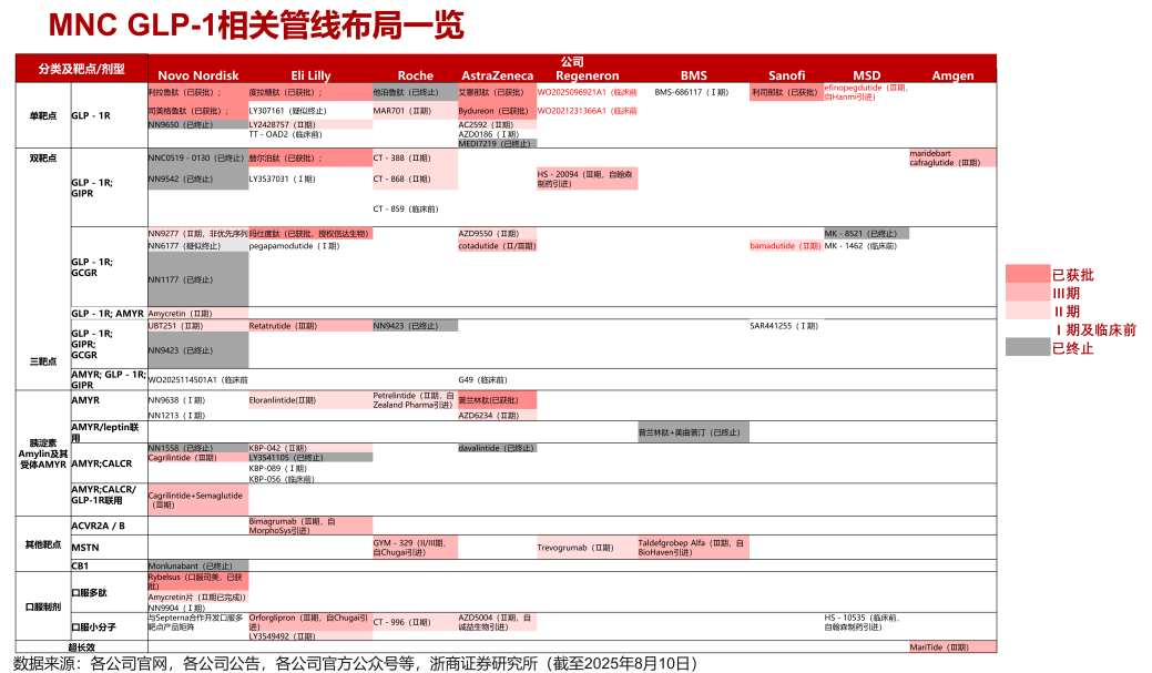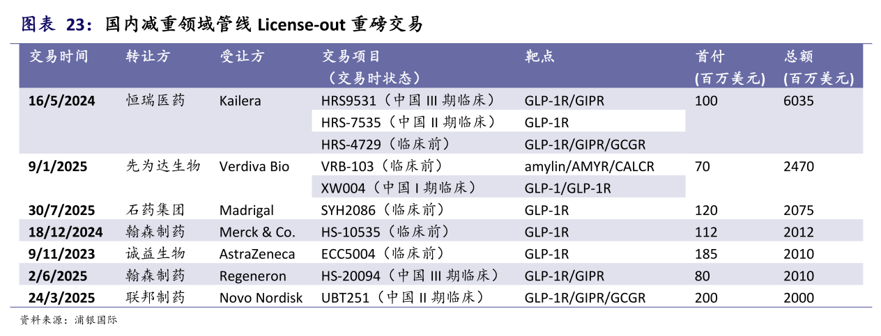 可见,中国药企的竞争并不限于国内,MNC通过巨额引进将战火引向了全球。换言之,国产减重管线成了MNC们的“军备竞赛”弹药。