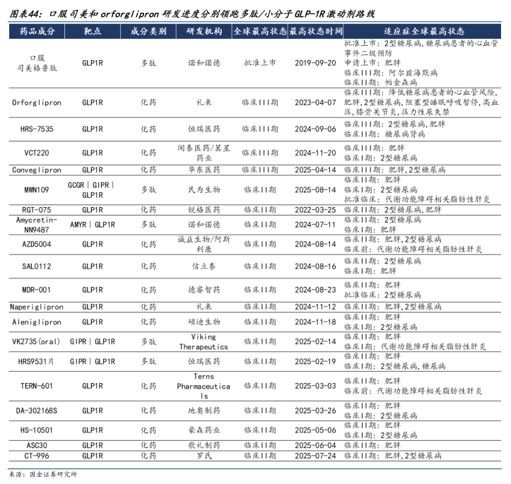 全球口服小分子GLP-1R激动剂研发管线(部分)