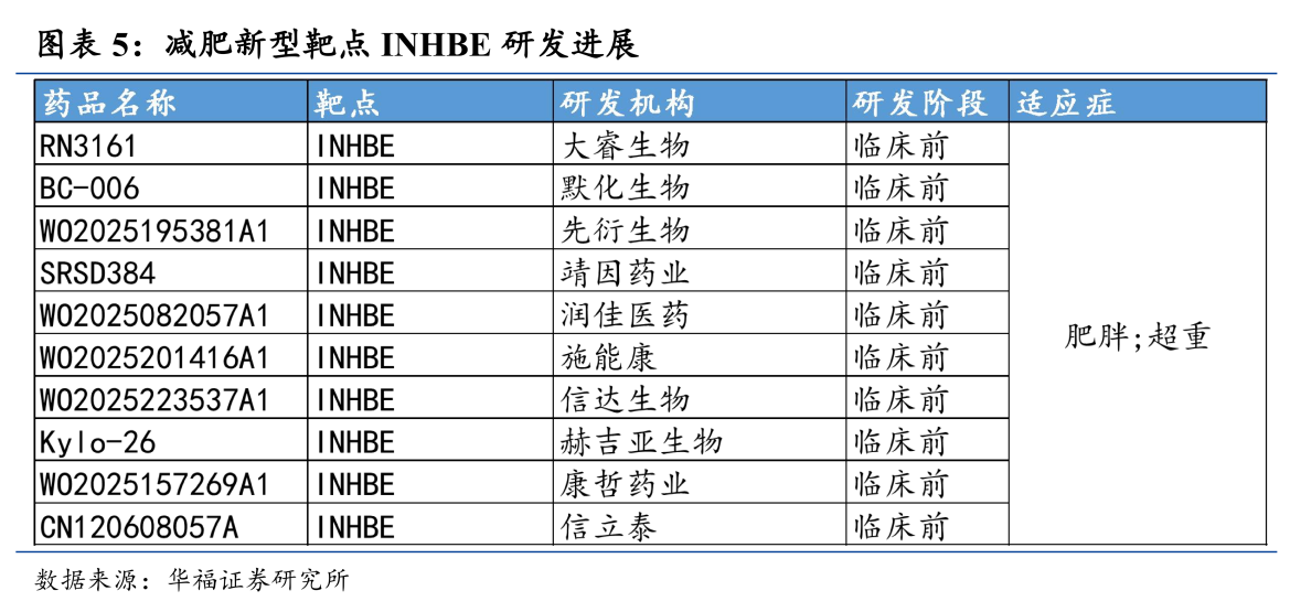 目前,有不少中国药企正在研发靶向INHBE的新型减肥药物,包括:信达生物、康哲药业、信立泰等,期待有大额BD诞生。
