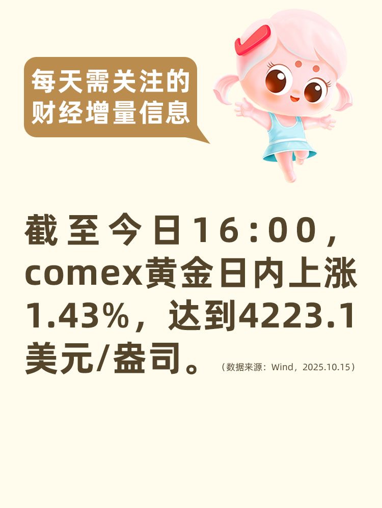 【每天需关注的财经增量信息】COMEX黄金日内上涨1.43%