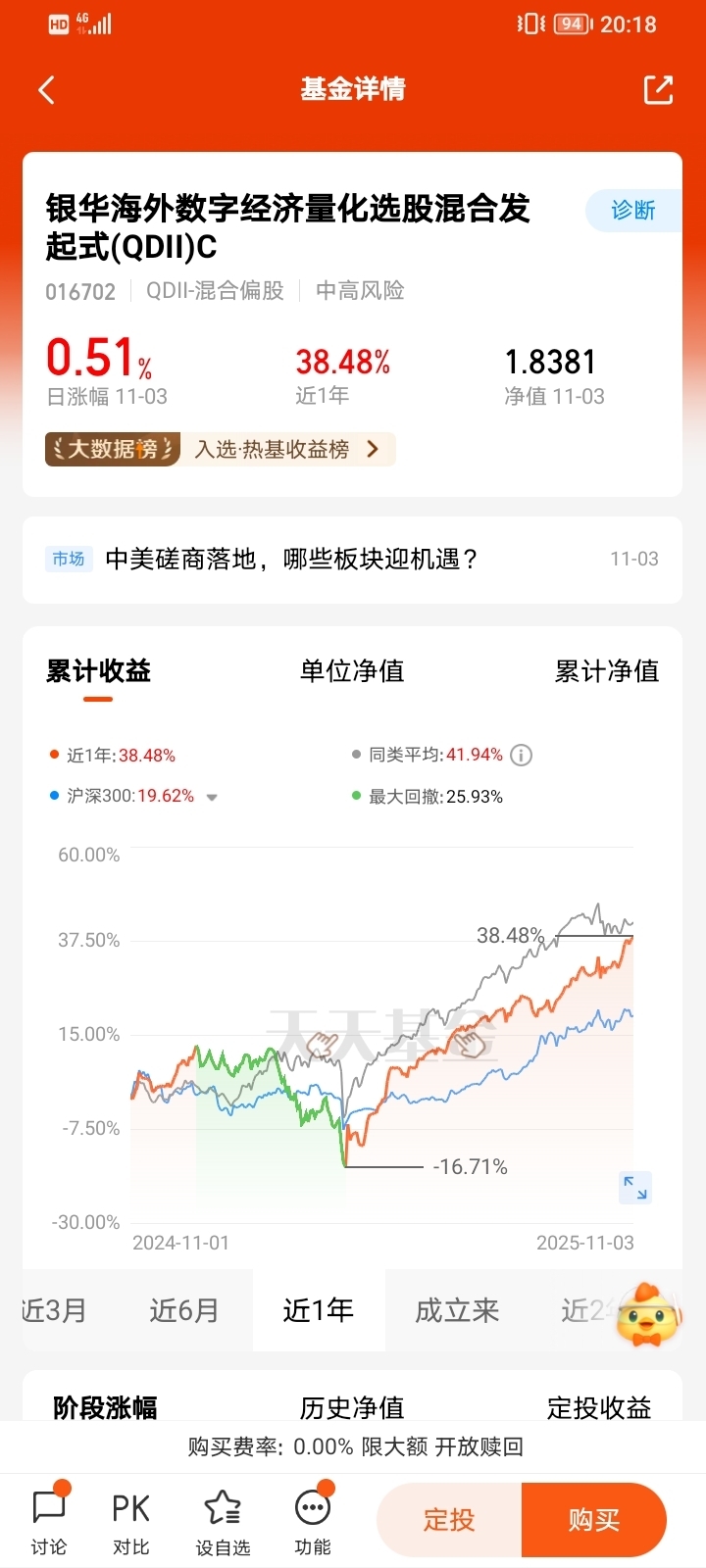 收益能力:2025年以来收益率达71.23%,在同类基金中排名前5%;近一年收益率68.32%,年化波动率72.58%,显著高于沪深300指数(18%)。例如2025年二季度金价上涨26%时,基金净值增长33.47%,超额收益显著。