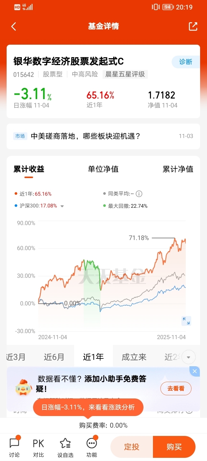 C类份额优势:免申购费,持有满30天免赎回费,年化总费率1.70%,适合短期波段操作或定投 。