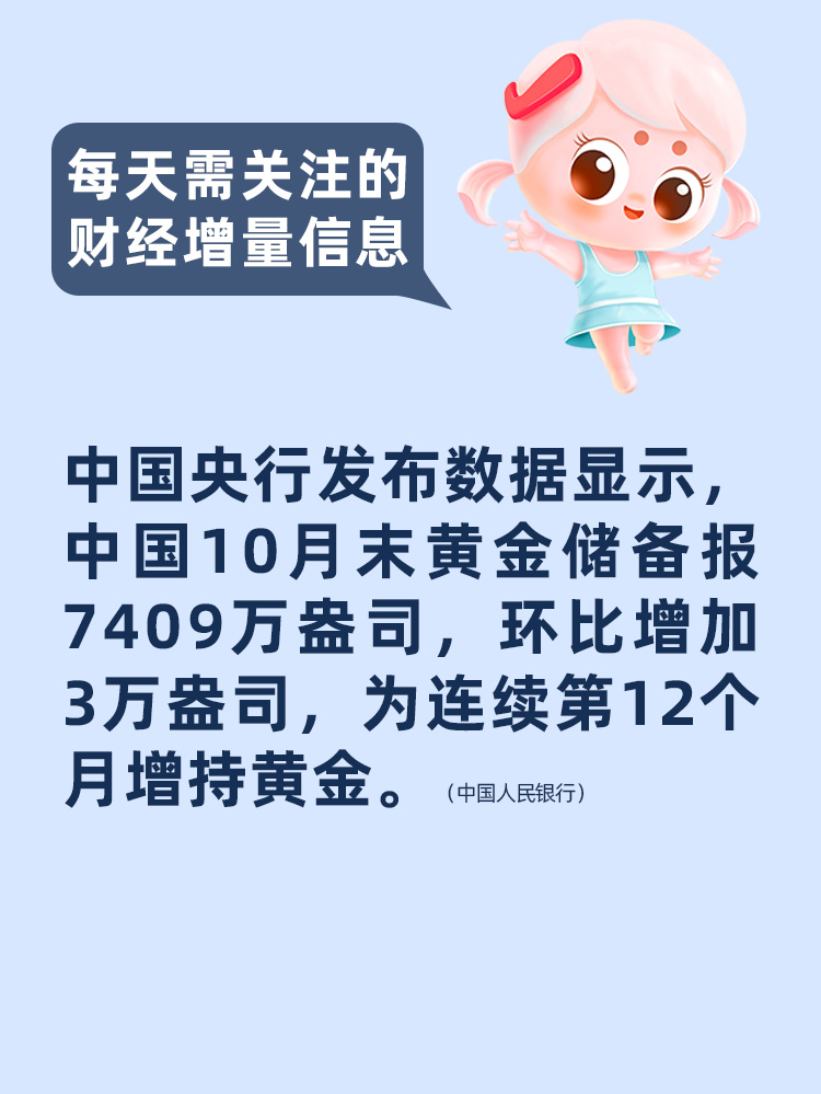 【每天需关注的财经增量信息】中国央行:中国10月末黄金储备报7409万盎司