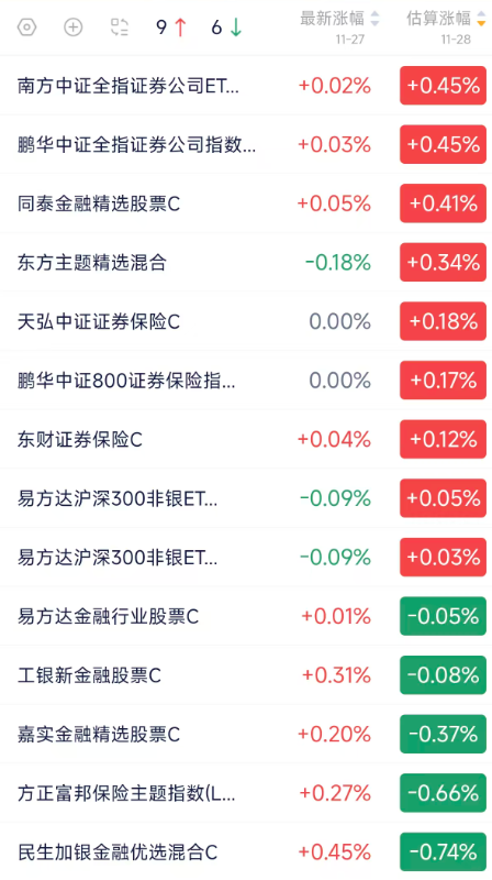 证券保险行业基金估值盘后快报:收益全览,关灯吃面