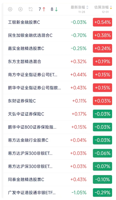 证券保险行业基金估值盘后快报,收益全览,优劣自明