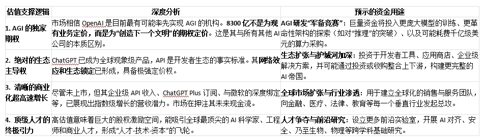 8300亿美元估值(约为苹果/微软市值的一半)是一个里程碑,其合理性基于以下几点,也预示了资金的用途: