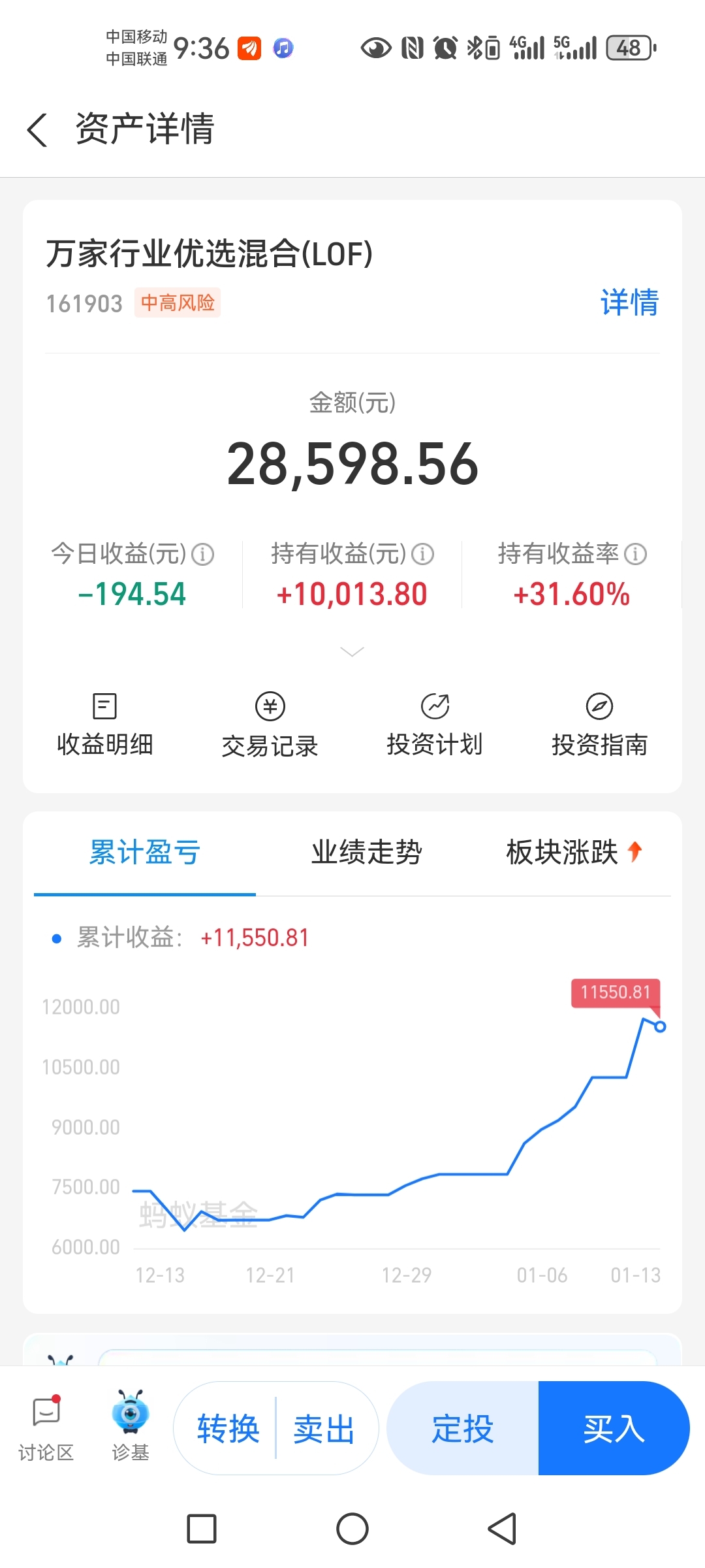 $万家行业优选LOF(SZ161903)$ 这晚上支付宝就跌了,看来是调仓了