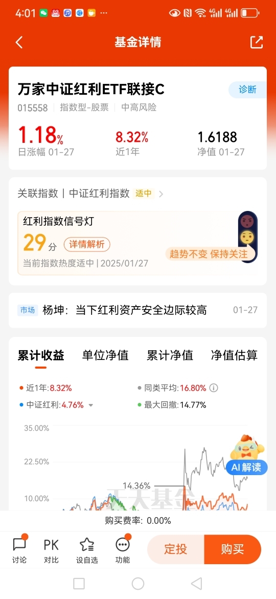 无论是追求长期稳定收益的普通投资者,还是希望优化投资组合风险收益特征的专业人士,都可以对万家中证红利指数基金给予高度关注。本人也计划再定投一部分仓位,一定会有好的回报。