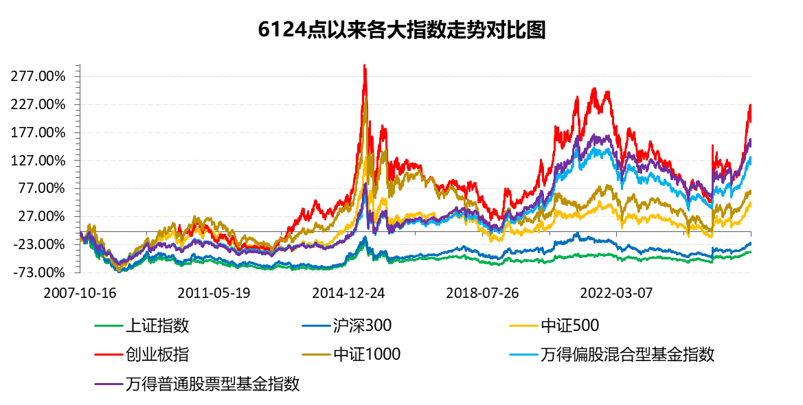 6124点至今,宽基指数谁最强?各大指数走势对比图如下。其中,上证指数(绿色线)成为表现最差的宽基指数,近18年一直底部徘徊,累计跌幅达35.78%;创业板指(红色线)扛起领涨大旗,区间涨幅高达202.59%,成为表现最好的宽基指数。