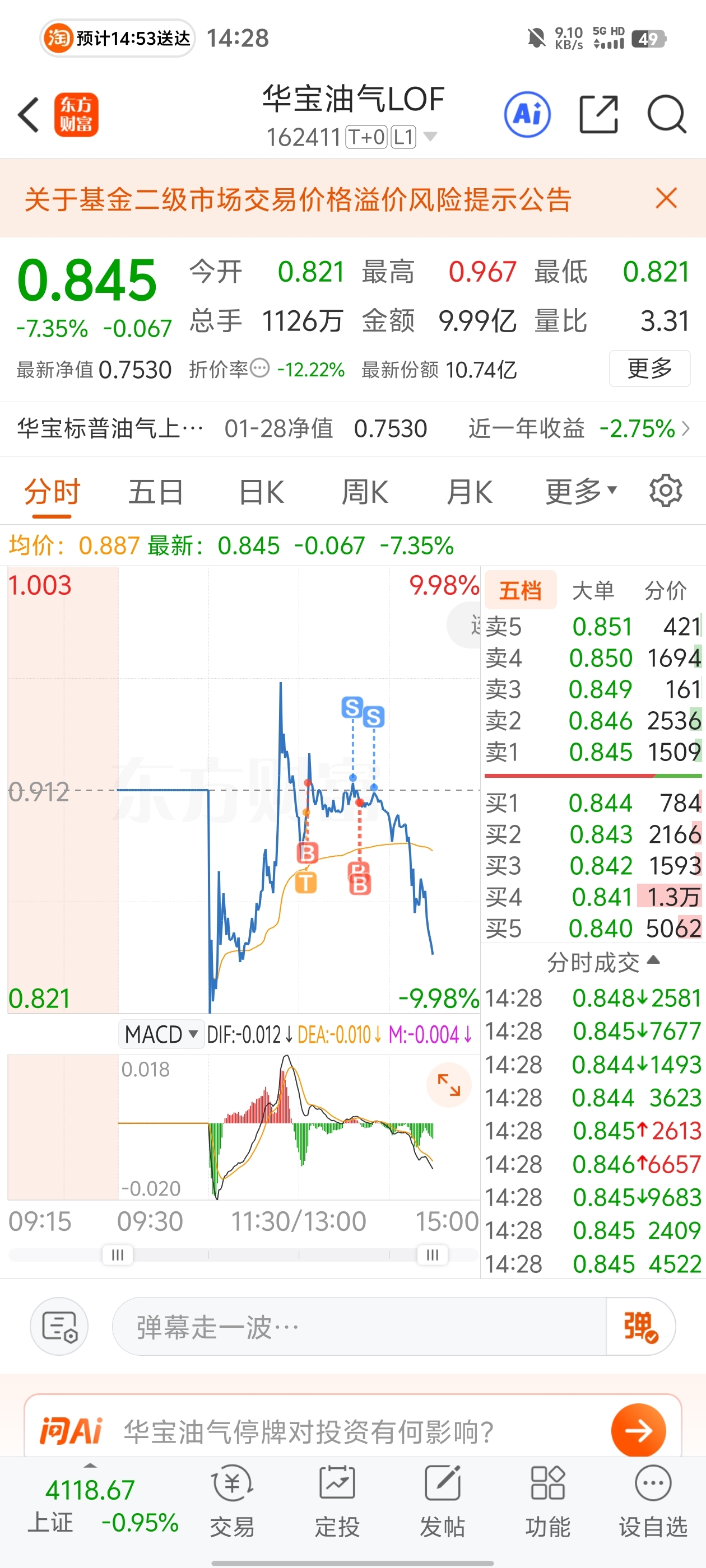 $华宝油气LOF(SZ162411)$ 发生什么事了