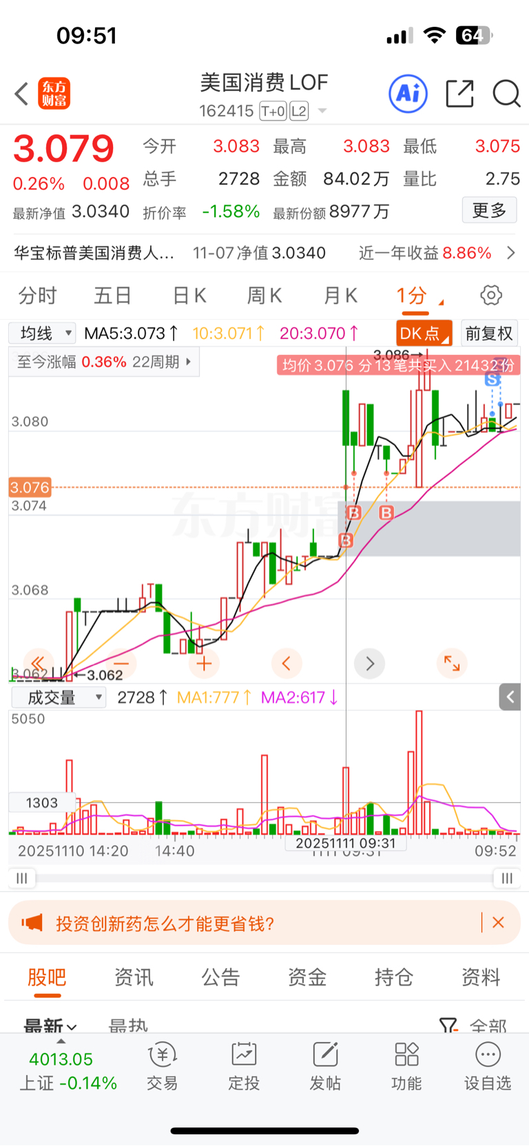 $美国消费LOF(SZ162415)$ 楼上的好人谢谢你抢跑