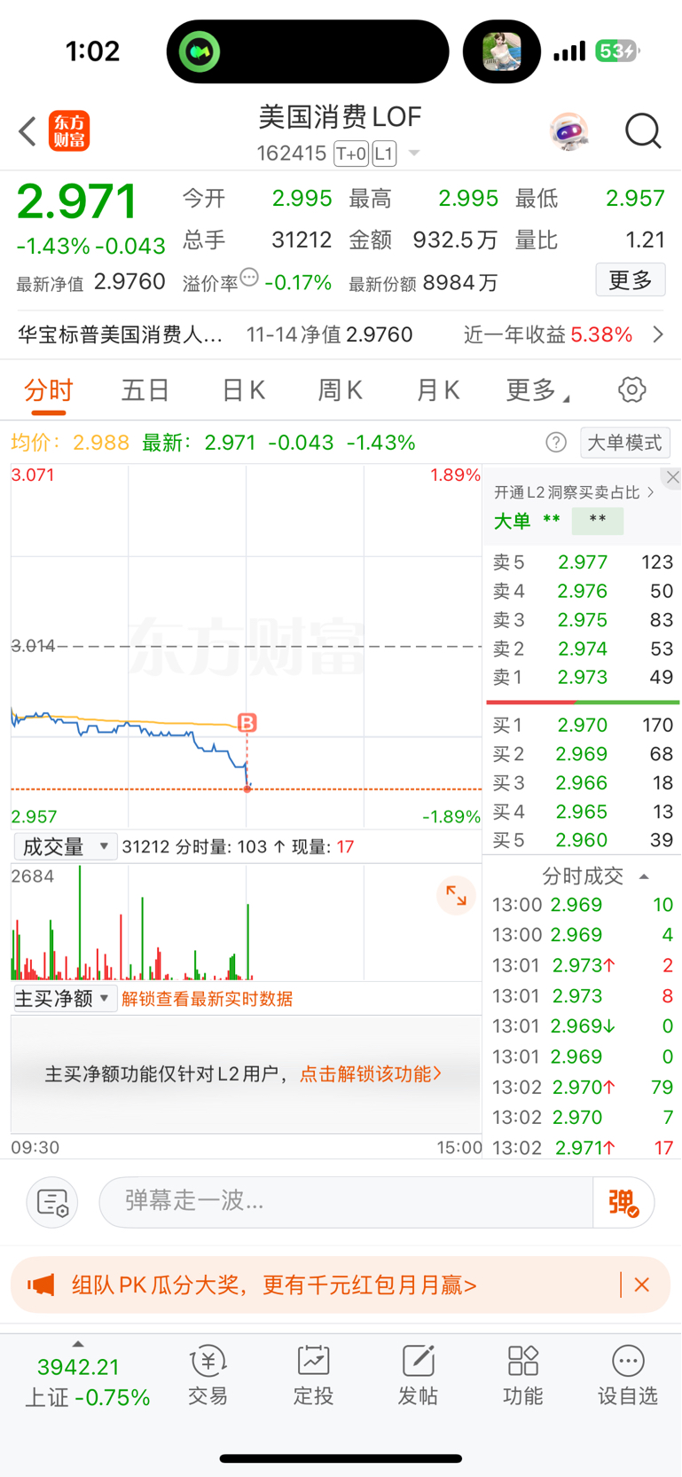 $美国消费LOF(SZ162415)$ $纳指ETF(SZ159941)$ 负溢价都来了 这不得开个仓