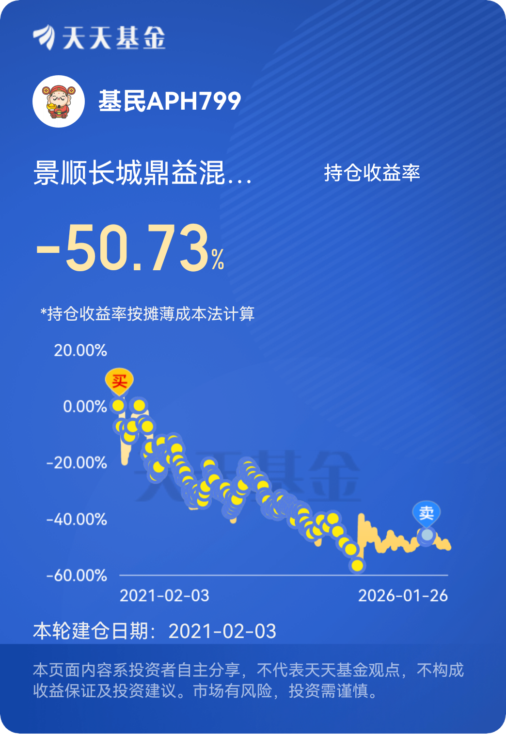 $景顺长城鼎益混合(LOF)A[162605]$ 太差劲了,太差劲了。我2020年定投的到现在亏了50%。#晒收益#