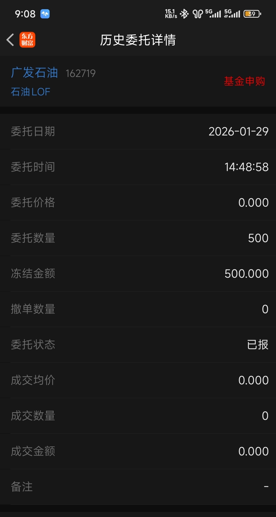 $石油LOF(SZ162719)$ 两天前买的为什么还看不到?其它的LOF都到账了今天可以卖了?咋回事?