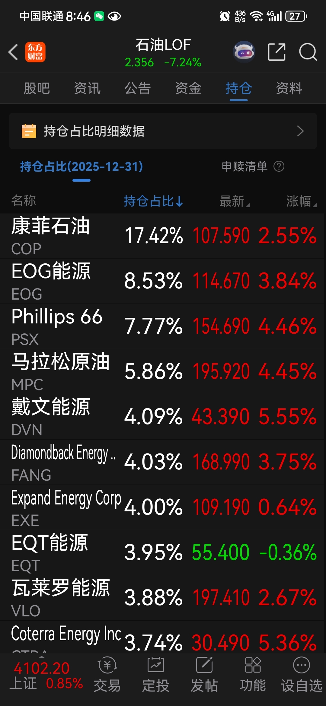 $石油LOF(SZ162719)$ 净值估计会上3.5或4个点,溢价就是负5个点了,理论上今天上涨五个点场内场外就是平的,朋友们猜猜今天的表现吧