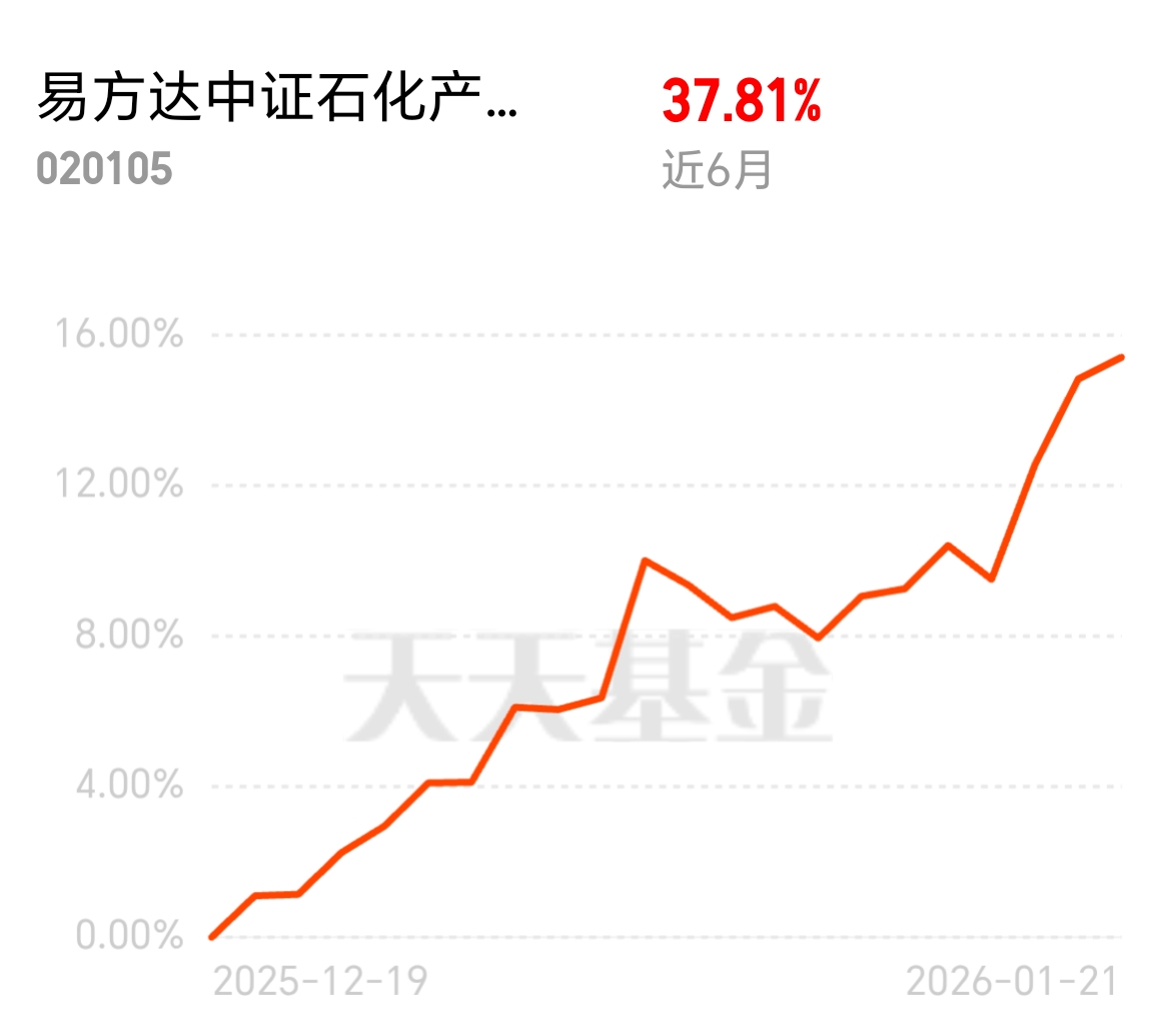 化工 ETF 权重股获增量资金配置,资金持续加仓,石油天然气领涨超有资金,易方达中证石化产业 ETF 联接发起式 C 近 6 月 37.81%,三桶油 + 细分化工机会都想抓住,买石化产业有资金撑$易方达中证石化产业ETF联接发起式C$