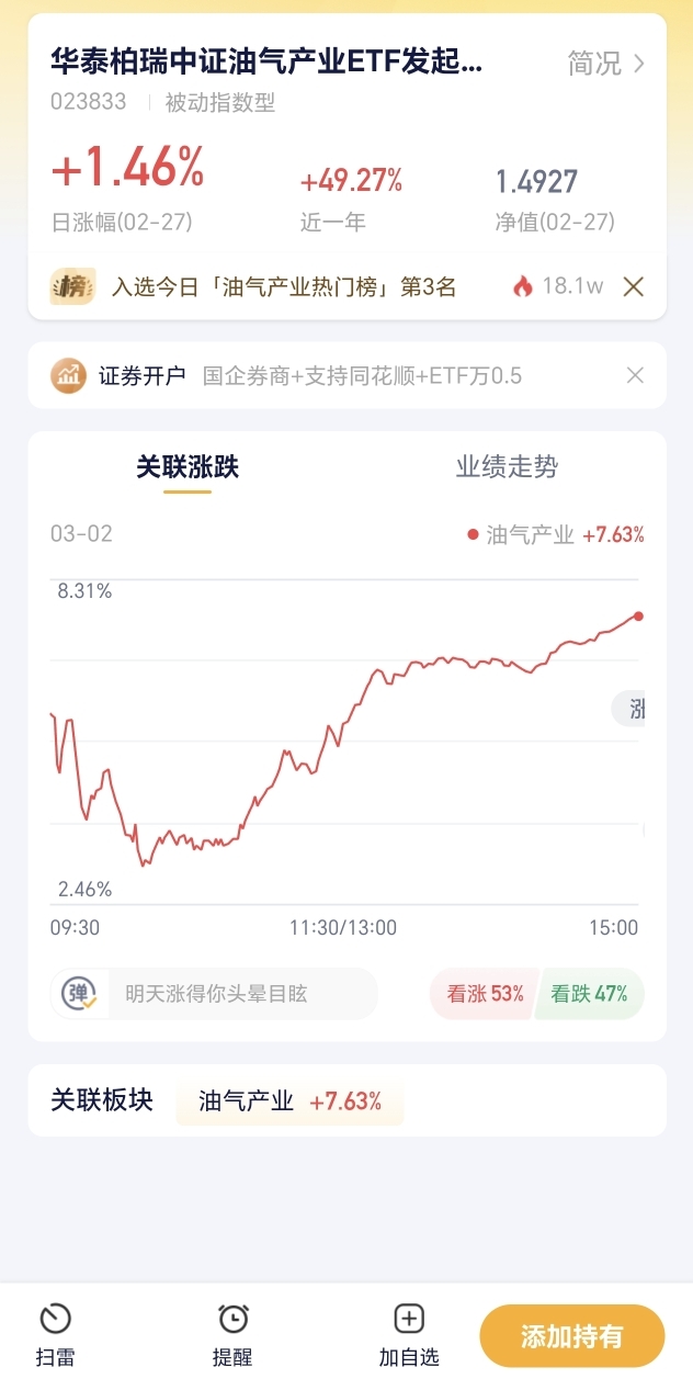 以前总觉得投资油气就得买原油期货或者石油股,但风险太高,波动太大。今天看到地缘冲突导致油价剧烈波动,更坚定了我的想法:得分散。华泰柏瑞的油气联接基金就像个“油气大礼包”,里面包含了产业链上多家公司。这样即使某家公司受影响,还有其他公司撑着,整体风险就分散了。而且基金买卖方便,流动性好。对于想把握油气机会又怕风险集中的我来说,这是个折中的好选择。
