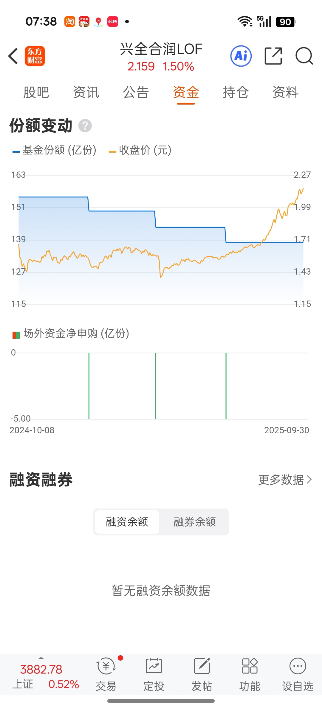$兴全合润LOF(SZ163406)$ 此基是我的第二大重仓股,买入两个月,浮盈31.42%,优秀!大名鼎鼎的谢经理在管理的牛基,基价已接近新高了,但是资金份额不断在流出减少,所能解释的原因是众韭们的可笑行为,解套即卖出!