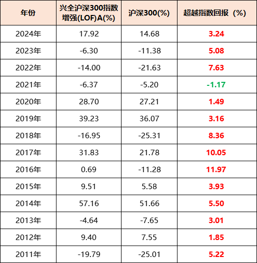 十四个完成会计年度里,十三年都跑赢沪深300指数。