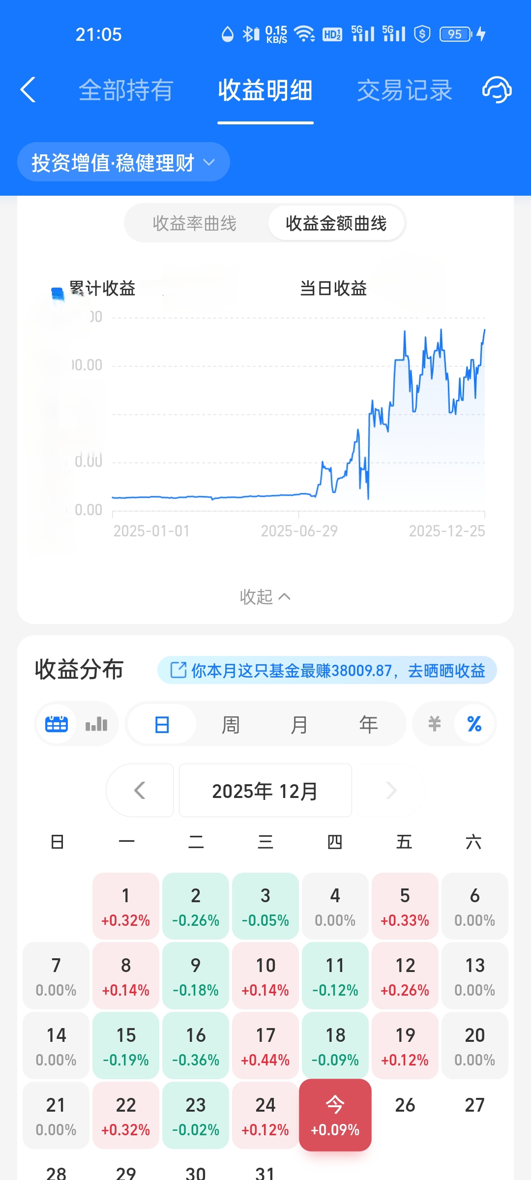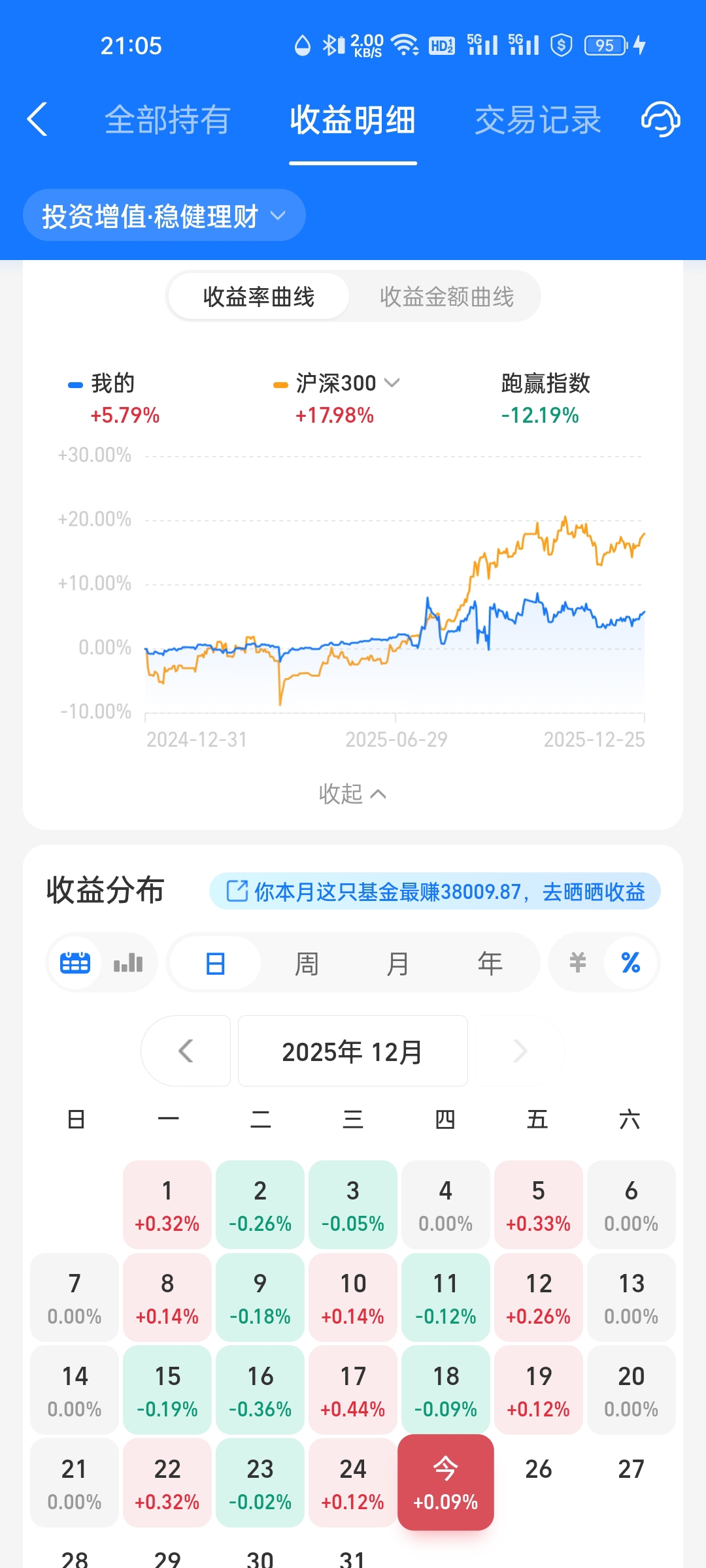 今年以来我的债基收益率与收益金额对比,