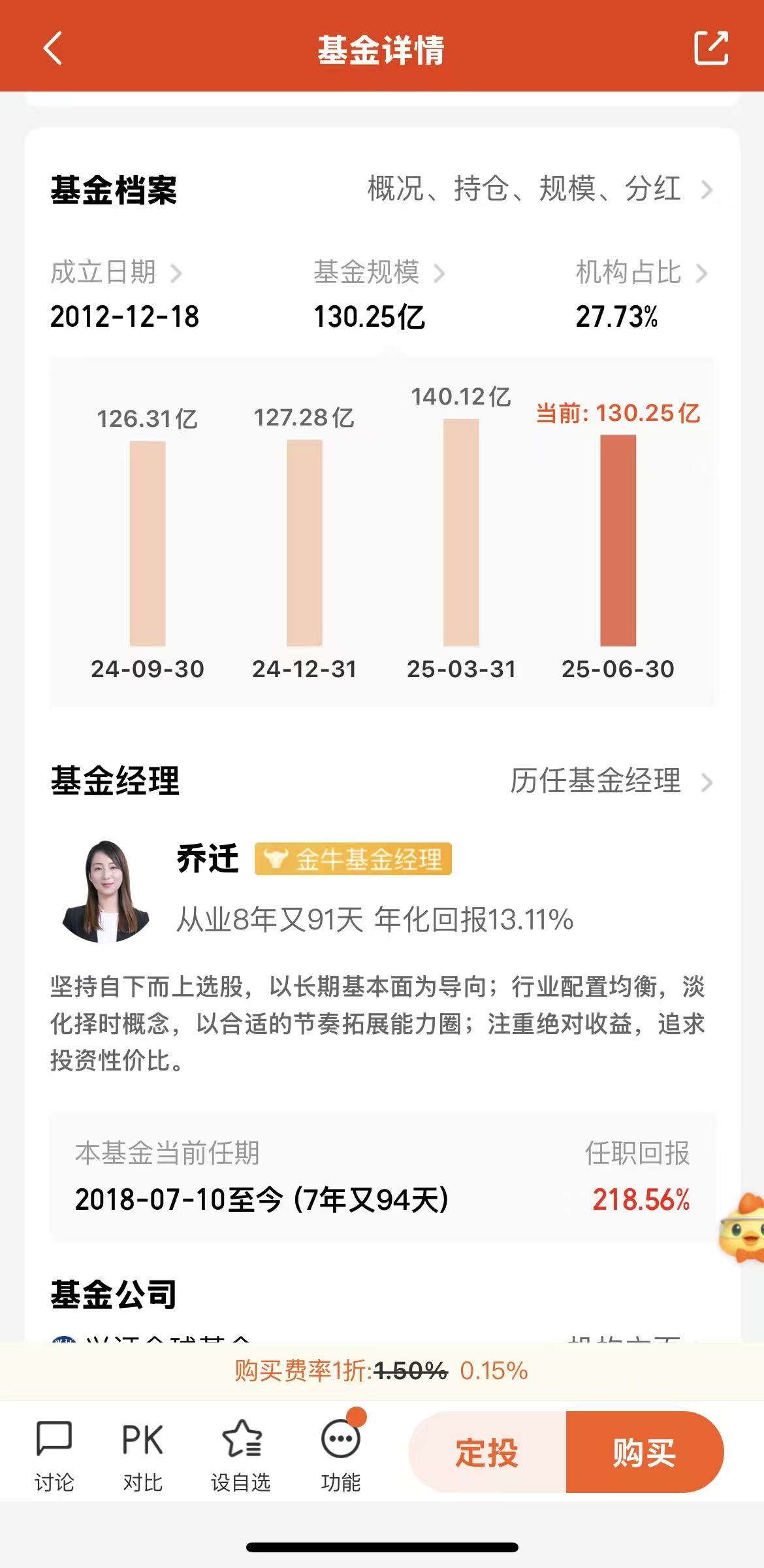 通常来说,基金经理的判断站在长期维度视角,而我们投资者持有的周期,可能只有两三年或者更短时间,对于波动率的容忍程度,双方也不一致,比如我持有兴全商业模式,从2021年到2025年,也有4年多的时间了,因为作为长期投资者,我是愿意相信价值投资和均衡投资的,这一点和乔经理的理念,倒是不谋而合,也是我愿意更多持有兴全旗下基金的原因;