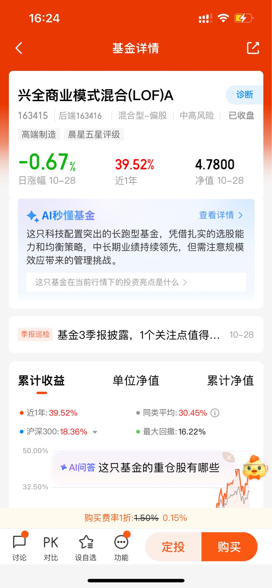 说来惭愧,我2020年开始入市投资,在权益资产的投资上并没有赚到几个钱。我自己也是反思过,主要是盲从。一些板块涨了很久,我才后知后觉开始大举买入,结果一次次买在了山顶上,也一度产生了退出的想法。直到一次社区活动中,我才知道了均衡策略 + 定期开放的兴全新视野混合基金。趁着上证指数处于3300点,我抱着试一试的心态,配置了一些仓位。持有期间也产生过卖出的想法,可由于封闭期的设置,我无法进行操作,间接管住了我爱操作的手,让我获取到了现如今这个收益率,可以说是非常满意。现在,我才真正意识到,单押一个板块,短期确实可以获得高收益,可是能真正拿走的少之又少。选择像乔迁这样价值成长风格的主动基金,不失为一种正确的选择!