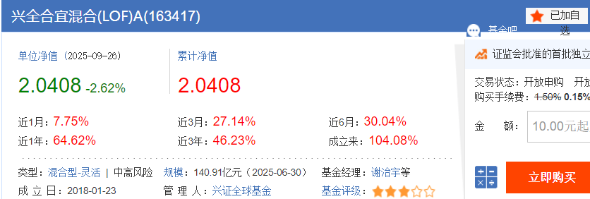 兴全合宜混合(LOF)A(163417):牛市浪潮中的价值锚与人性博弈