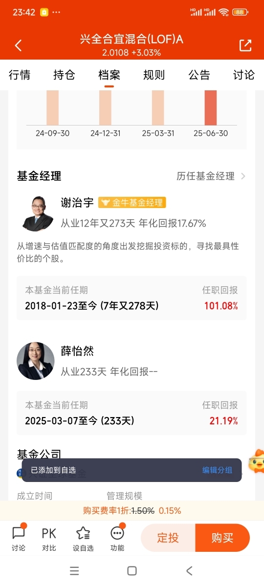 多年的投资中,他更愿意去寻找能够稳健增长、或是绝对低估值的公司,背后的逻辑在于其相对景气度可以维持比市场预期更长的时间。加上他的风险控制能力一流,他的基金贴合我国政策方向,选股思路我也很认可,我会一直支持的。@兴证全球基金