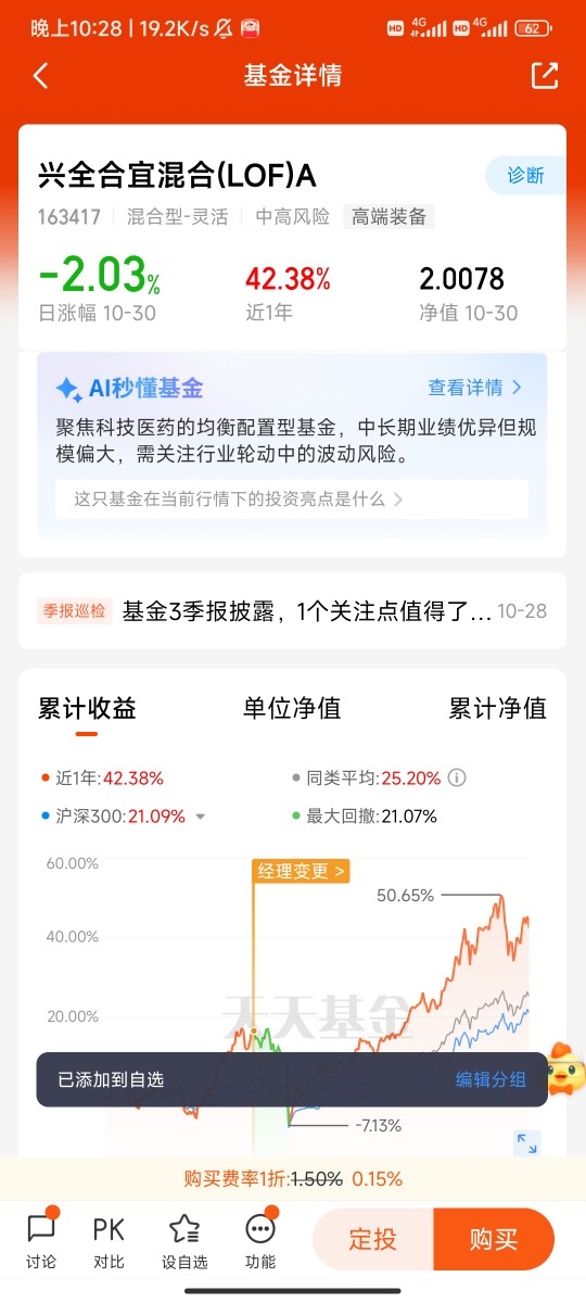 后市来看,四季度市场波动或加剧,均衡配置仍是最优解。谢治宇认为,科技创新与高分红资产的价值重估正在持续,两类资产共同抬升市场估值水位。兴全合宜A既通过半导体、AI硬件等标的捕捉成长弹性,又以低估值蓝筹对冲风险,完美适配当前市场环境。对于普通投资者,无需纠结行业择时,通过这只基金即可一键布局多赛道优质资产,搭配定投策略更能淡化短期波动,分享长期成长红利。