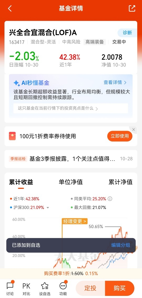 #均衡投资# 均衡配置资产中,虽然我没有抓住$兴全合宜混合(LOF)A$ $兴全商业模式混合(LOF)A$ $兴全多维价值混合A$ 这几个均衡中强进攻的好标的,但我也在穿越牛熊的$兴证全球红利混合C$ #晒收益# 中稳稳增收。