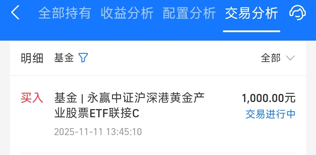 $永赢中证沪深港黄金产业股票ETF发起联接C(OTCFUND|020412)$加仓1000元。