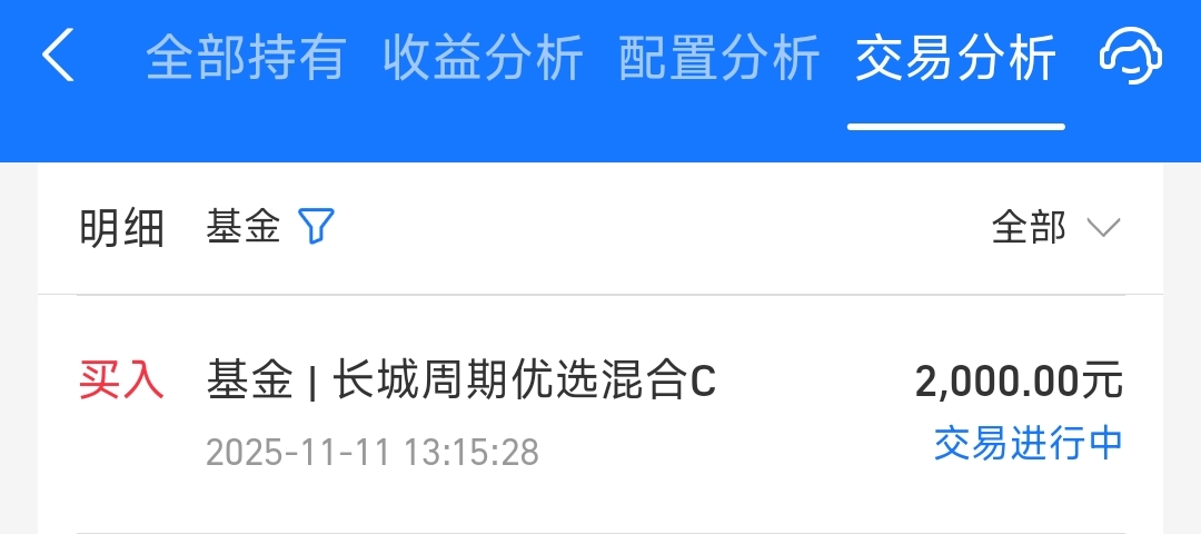 $长城周期优选混合发起式C(OTCFUND|021637)$加仓2000元。