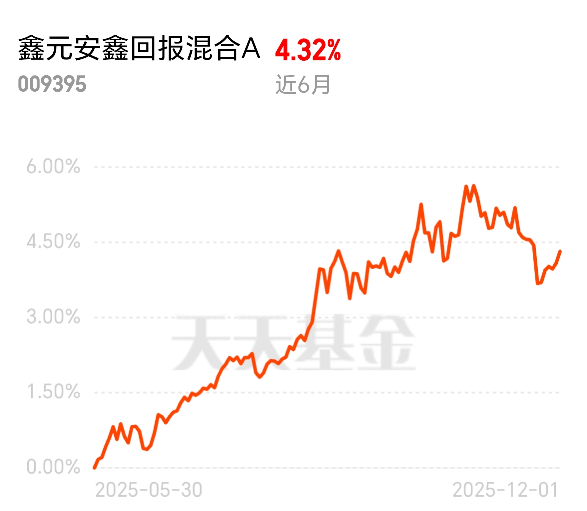信用债市场分化但高等级标的稳健,叠加少量低波动权益,增强策略性价比凸显。鑫元安鑫回报混合 A 近 6 个月收益 4.32%,风控严格不踩雷,稳稳增厚收益不折腾。