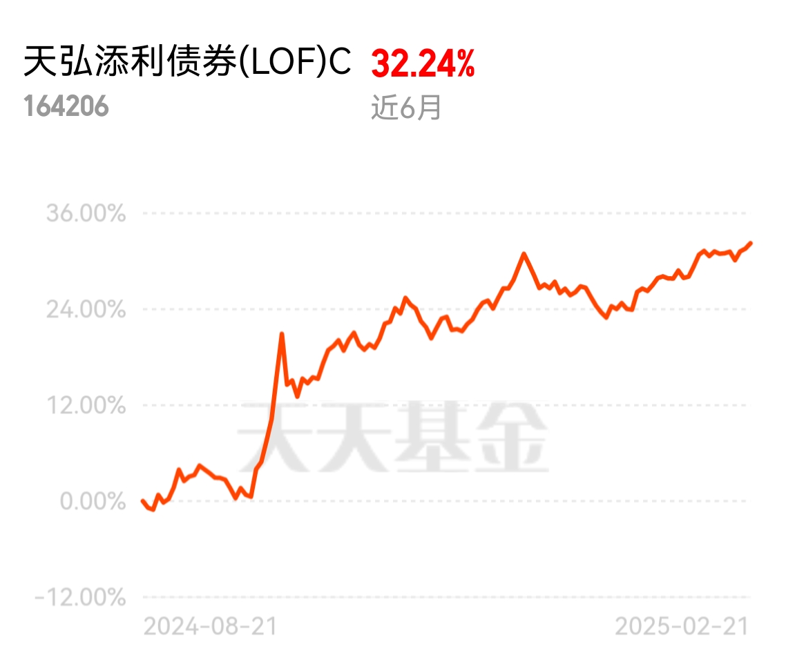 #阿里AI收入爆发式增长,引爆A股大科技板块# 打卡第3天,根据昨日(2月21日)的市场表现,天弘添利债券C单位净值为1.5526元,当日上涨0.52%,显示出一定的上涨动能。从近期业绩来看,该基金近3月涨幅为7.48%,近1年涨幅为22.84%,在一级债基中排名靠前,表现较为出色。其投资策略主要集中在可转换企业债,占比高达98.30%,这种配置使其在股市表现较好时能够通过转债获取增值收益,同时也受益于债市的稳定性。然而,投资者也需注意市场利率变化和可转债市场的波动对其净值的影响。总体而言,天弘添利债券C在当前市场环境下展现了较强的收益能力和一定的抗风险能力,适合对债券基金有一定了解且追求稳健收益的投资者。@天弘基金