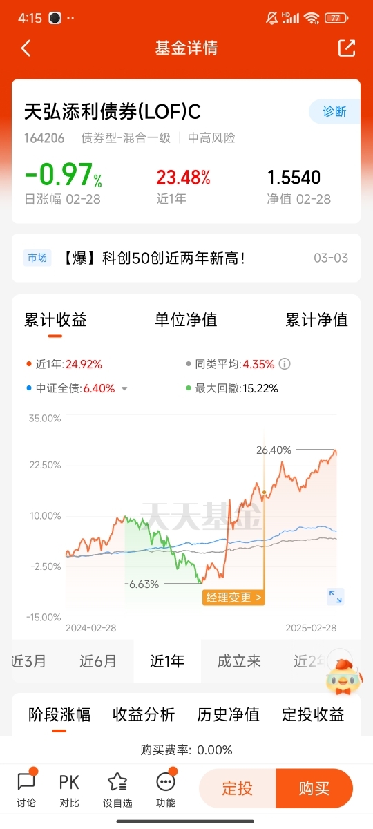 鉴于这两只基金的优秀表现,我已将它们加入自选,进行密切观察。从当前市场形势来看,经济复苏的步伐正在逐步加快,企业盈利状况也在不断改善。这对于债券市场和股票市场来说,都是一个积极的信号。债券市场在利率稳定的情况下,能够维持稳定的收益;而股票市场的上涨,则有望给基金净值带来正向推动。